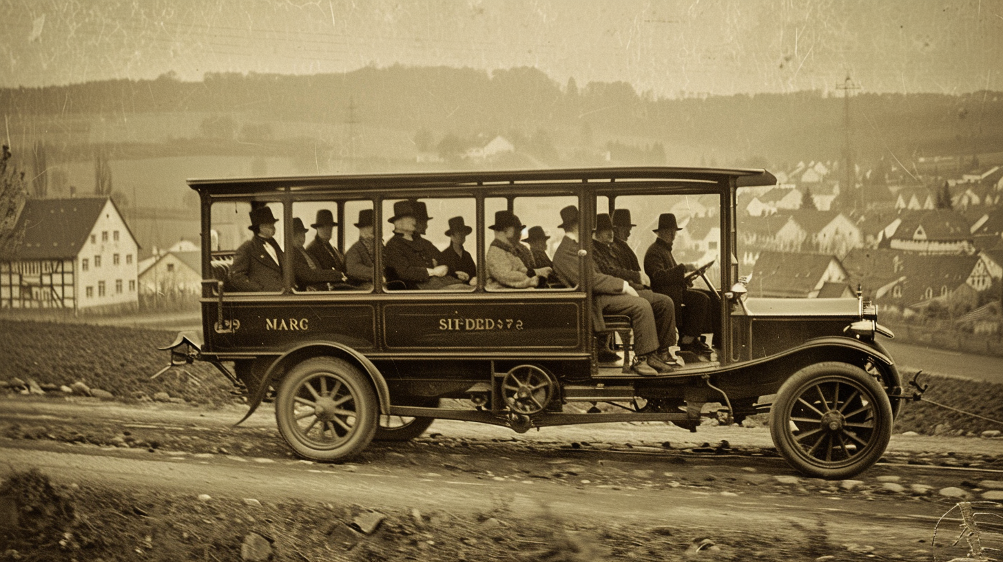 Карл Бенц адаптировал свой автомобильный двигатель. Первый его автобус вмещал 8 пассажиров и на регулярной основе обслуживал маршрут между немецкими городами Зиген, Нетфен и Дойц. Это было небольшое расстояние, но изобретение инженера стало первым в истории шагом к созданию общественного транспорта с бензиновым двигателем.